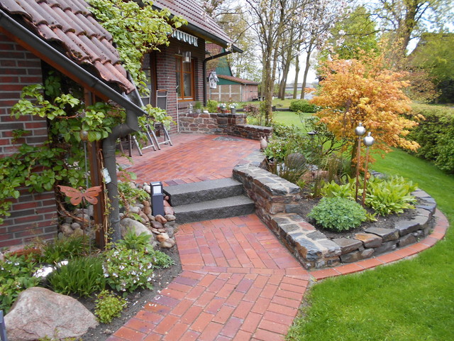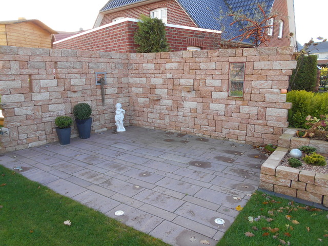 Gestaltung von individuellen Terrassen und Plätzen im Privatgarten mit Mauern und Bepflanzungen nach jeweiligen Wünschen.
